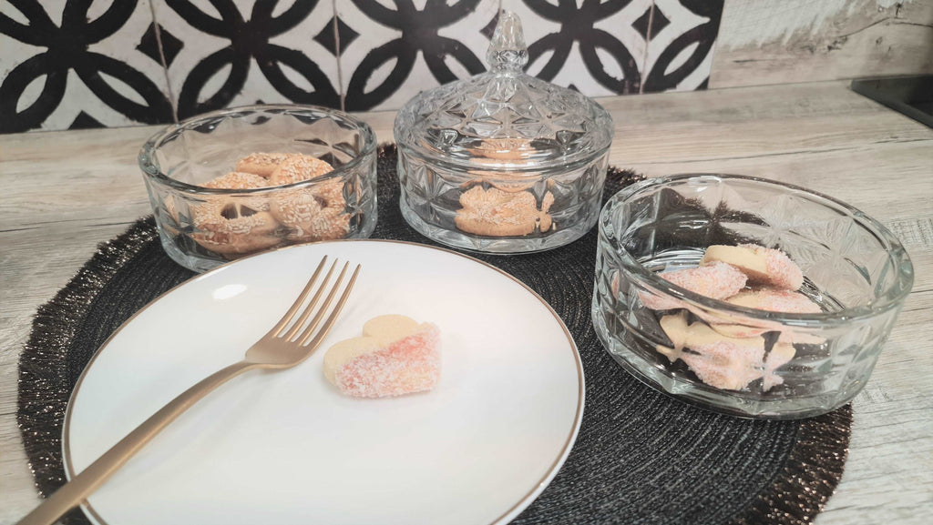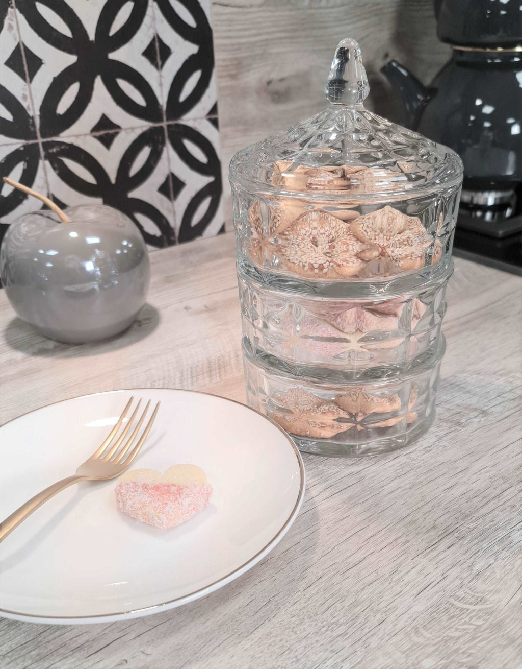 CRYSTAL Lot de 2 bonbonnières à 3 étages en verre empilable avec couvercle