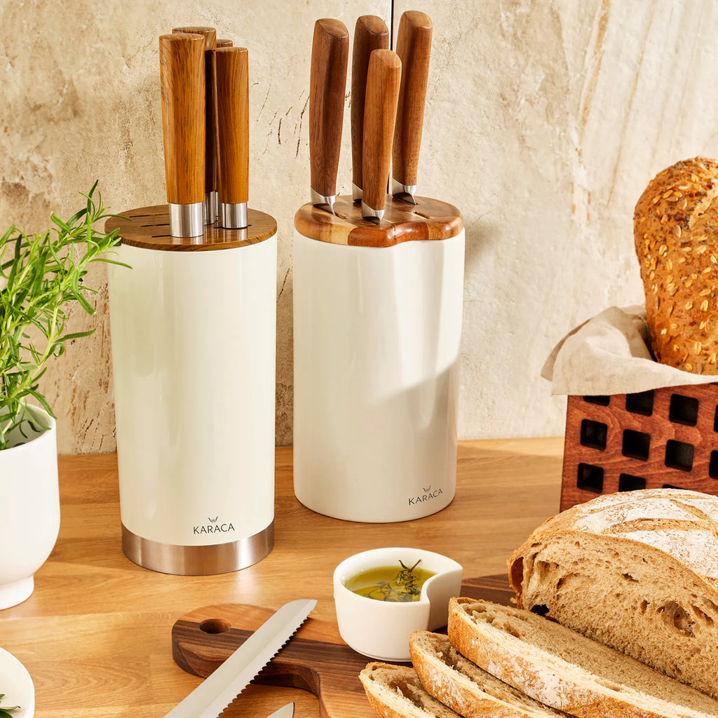 Des couteaux tranchants, ergonomiques et fonctionnels sont les indispensables pour les chefs professionnels afin de préparer des délicieux plats. Le set de couteaux Karaca Foolproof 6 pièces comprend 5 couteaux tranchants, dont un couteaux à éplucher, un à trancher, un à viande, un à pain et un de chef. Ce set de couteaux se distingue par sa facilité et sa praticité. Il sera l'un des produits les plus appréciés de votre cuisine grâce à sa poignée ergonomique et son utilisation confortable. Vos couteaux sont envoyés avec un support spécial pour prolonger leur durée de vie et faciliter leur rangement. Il est recommandé de les laver à la main. Pour une utilisation durable, sécher immédiatement après le lavage.
